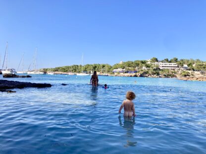 Lang verhaal kort, ga niet alleen met een kind van nog geen 2 op vakantie als je wilt ontspannen. Want dit was keihard aanpoten. Ik was even vergeten dat kinderen van twee van alles willen (en dat ook steeds beter weten te verwoorden!) maar nog heel weinig kunnen. Gelukkig kun je wel samen in de zee zitten en dat hebben we dan ook dagenlang gedaan. Op zoek naar visjes, mooie stenen, schelpen en soms alleen maar kijken naar de kleur van het water. En dat blauw, man dat vond ik het mooiste aan Ibiza.