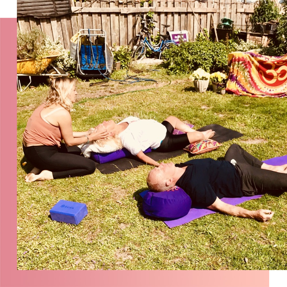 As a couple we also work together on retreats or give private classes on request. One of us is giving the class and the other one is helping you to get into the pose, using hands-on therapy and props. We use different homeopathic oils from Sri-Lanka. Janine is also trained as an ayuveda specialist in India, and can give you yoga poses and nutrition advice based on your dosha type and constitution.